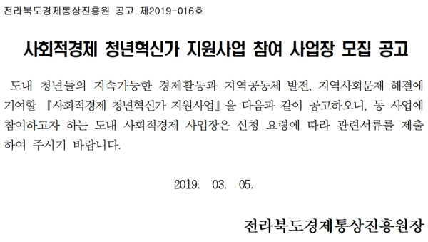 2019_사회적경제_청년혁신가_지원사업_참여사업장_모집_공고문.hwp