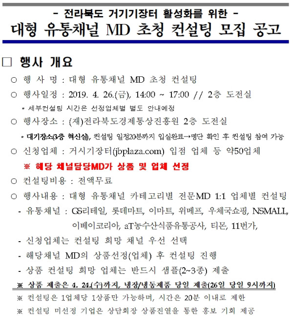 [거시기장터 입점업체 대상] 대형 유통채널 MD 초청 컨설팅 참여 업체 모집