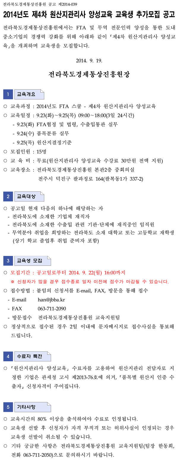 제4차 원산지관리사 양성교육 교육생 모집 안내