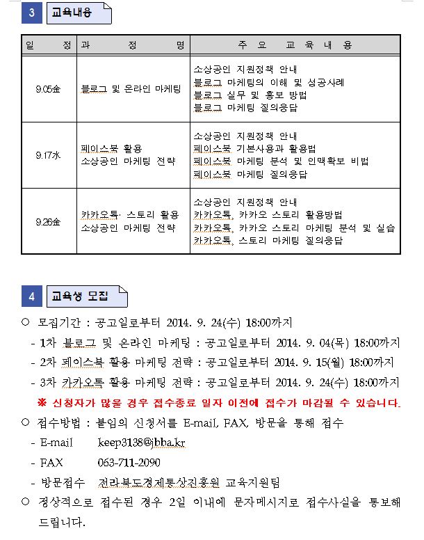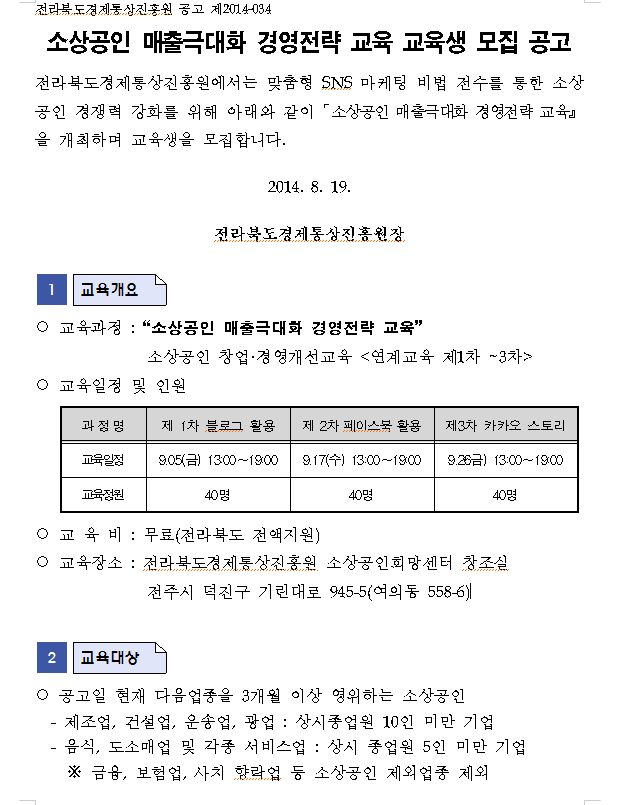 소상공인 매출극대화 경영전략 교육 교육생 모집공고