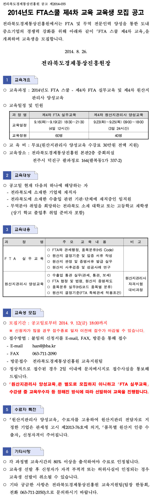 제4차 FTA 실무교육 및 원산지관리사 양성교육 교육생 모집안내