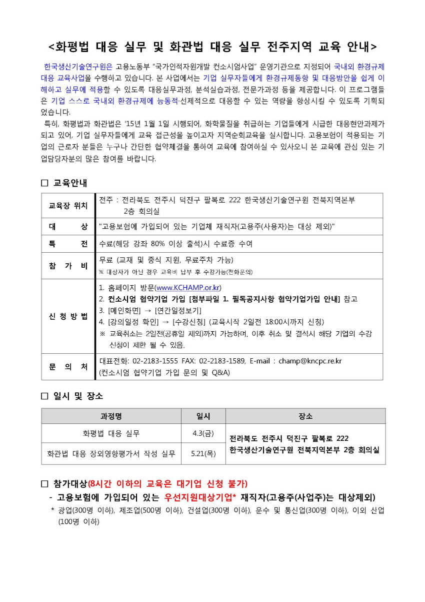 화평법 및 화관법 대응 실무 전주지역 교육 안내