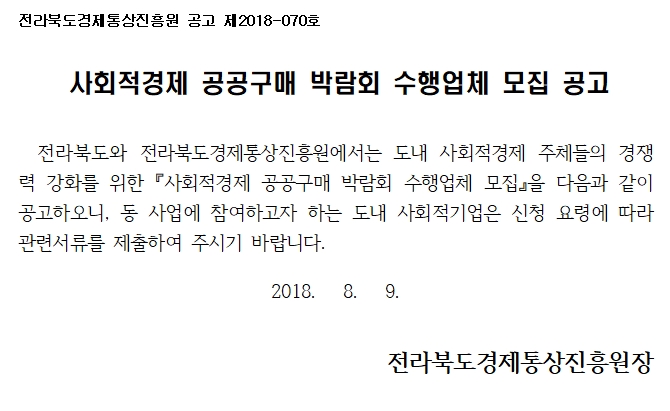 사회적경제 공공구매 박람회 수행 사회적기업 모집