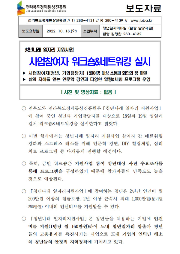 20221018 청년나래 일자리 지원사업 워크숍&네트워킹 실시