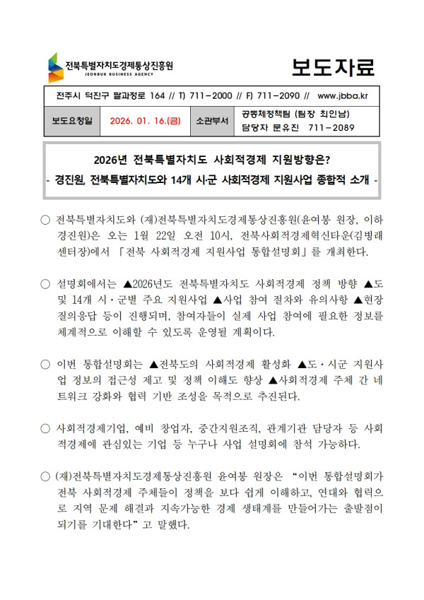 260116 2026년 전북특별자치도 사회적경제 지원방향은