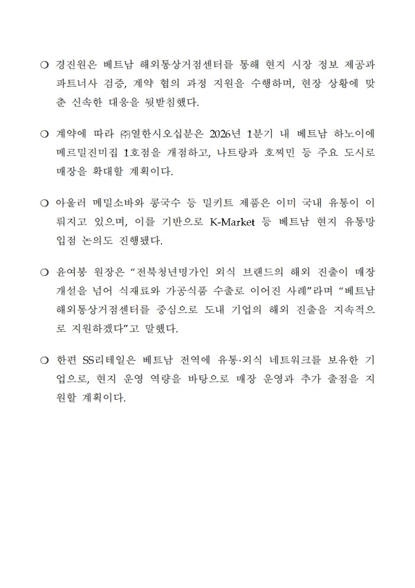 260203 경진원 밀착 지원 통했다 -전북 외식 브랜드 베트남 시장 안착 시동