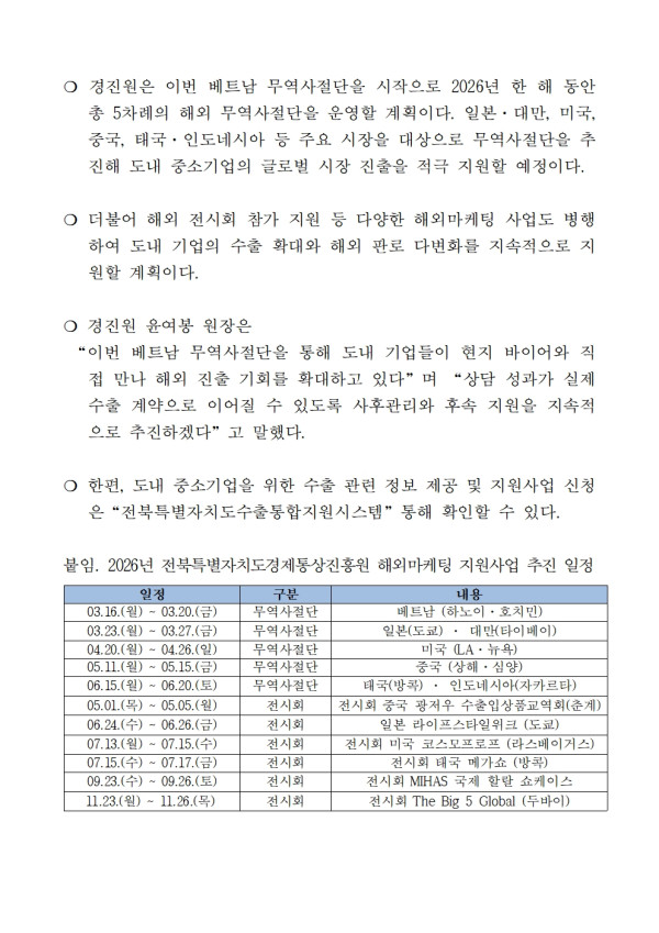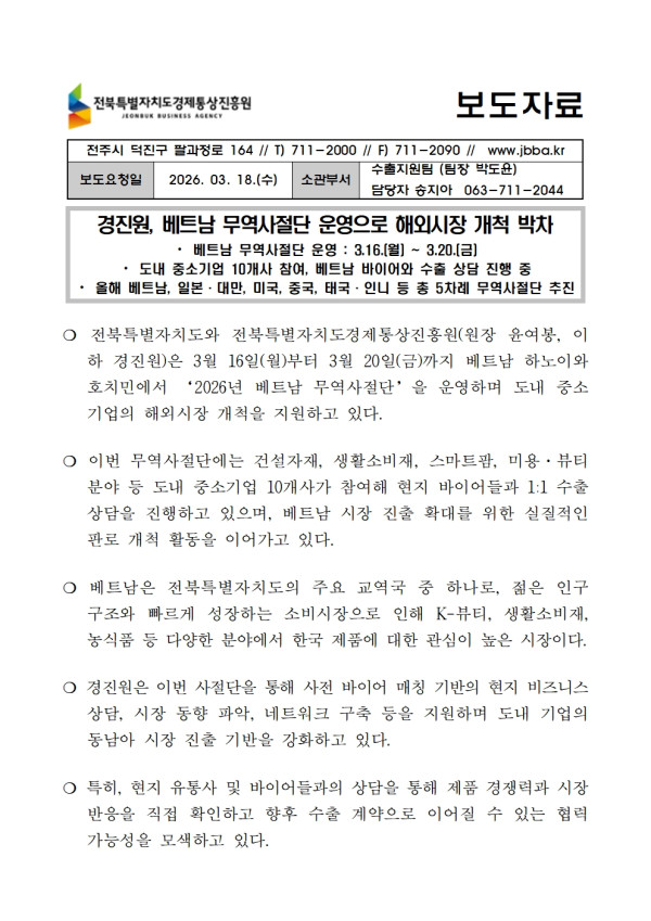 20260318_보도자료_경진원_ 베트남 무역사절단 운영으로 해외시장 개척 박차 페이지 정보 작성자 관리자 작성일26-03-18 09:37 조회22회 댓글0건 관련링크 이전글 다음글 목록 본문 보도자료 댓글목록 등록된 댓글이 없습니다. 이전글 다음글 목록