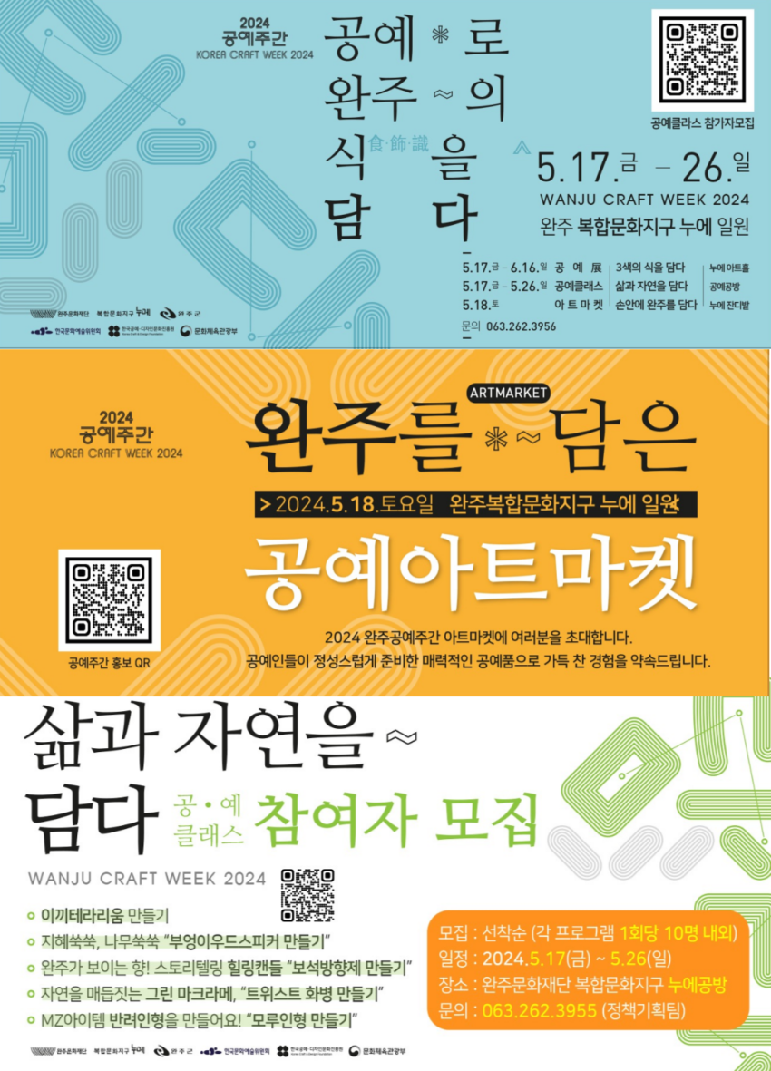 [완주문화재단]<2024 공예주간> '손 안에 완주를 담다' 공예아트마켓 페이지 정보 작성자 관리자 작성일24-05-10 14:33 조회2,803회 댓글0건 관련링크 이전글 다음글 목록 본문 댓글목록 등록된 댓글이 없습니다. 이전글 다음글 목록