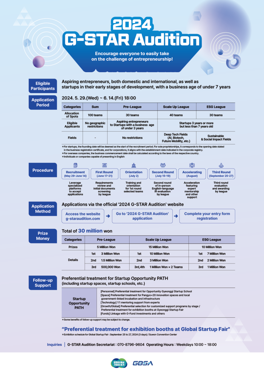 [경기도경제과학진흥원] 2024 G-스타 오디션 참가자(기업) 모집 공고