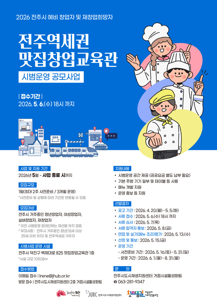 2026년 전주역세권 맛집창업교육관 시범운영 공모사업의 참여 단체(자)를 모집합니다.