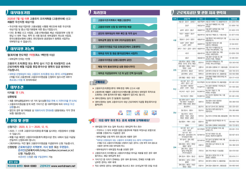 · (대부조건) 연 1.5%, 1년거치 일시상환(고용유지지원금을 받게 되면 대부금 우선상환)