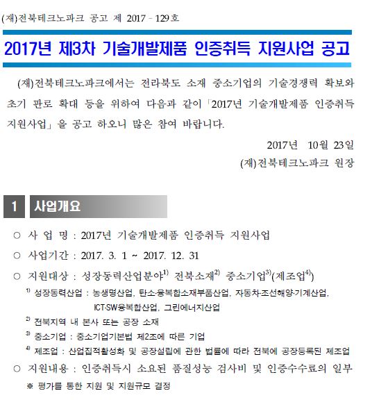 (유관기관소식)2017년 제3차 기술개발제품 인증취득 지원사업 공고