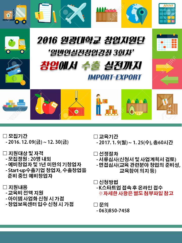 - 2016년 일반인 실전창업강좌 - ‘창업에서 수출 실전까지’교육생 모집 |