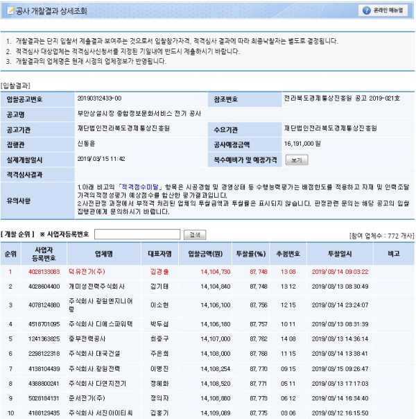 개찰결과 | 부안상설시장 종합정보문화서비스 전기 공사 수의 견적제출 공고 개찰결과 페이지 정보 작성자 신동윤 작성일19-03-15 17:55 조회1,895회 댓글0건 관련링크 이전글 다음글 목록 본문 세부정보 공고번호 부안상설시장 종합정보문화서비스 전기 공사 수의 견적제출 공고 개찰결과 댓글목록 등록된 댓글이 없습니다. 이전글 다음글 목록