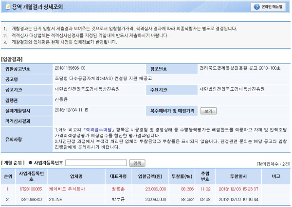 개찰결과 | 조달청 다수공급자계약 컨설팅 지원 용역 개찰결과 페이지 정보 작성자 신동윤 작성일18-12-14 02:50 조회1,647회 댓글0건 관련링크 이전글 다음글 목록 본문 세부정보 공고번호 조달청 다수공급자계약 컨설팅 지원 용역 개찰결과 댓글목록 등록된 댓글이 없습니다. 이전글 다음글 목록