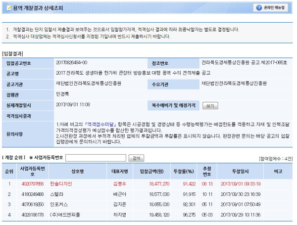 개찰결과 | 2017 전라북도 생생마을 한가위 큰장터 방송홍보 대행 용역 개찰결과 페이지 정보 작성자 민경록 작성일17-09-06 17:12 조회2,069회 댓글0건 관련링크 이전글 다음글 목록 본문 세부정보 공고번호 2017 전라북도 생생마을 한가위 큰장터 방송홍보 대행 용역 개찰결과 댓글목록 등록된 댓글이 없습니다. 이전글 다음글 목록