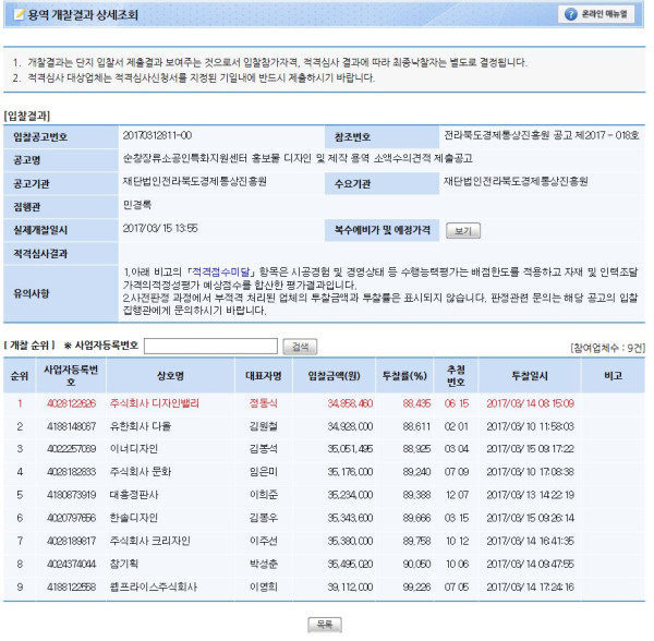 개찰결과 | 순창장류소공인특화지원센터 홍보물 디자인 및 제작 용역 개찰결과 페이지 정보 작성자 민경록 작성일17-03-24 18:18 조회2,233회 댓글0건 관련링크 이전글 다음글 목록 본문 세부정보 공고번호 순창장류소공인특화지원센터 홍보물 디자인 및 제작 용역 개찰결과 댓글목록 등록된 댓글이 없습니다. 이전글 다음글 목록