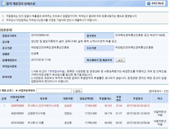 개찰결과 | 냉난방 및 빌딩자동제어 설비 교체(구축) 설계 용역 개찰결과 페이지 정보 작성자 민경록 작성일17-04-10 15:39 조회1,810회 댓글0건 관련링크 이전글 다음글 목록 본문 세부정보 공고번호 냉난방 및 빌딩자동제어 설비 교체(구축) 설계 용역 개찰결과를 붙임과 같이 공지합니다. 댓글목록 등록된 댓글이 없습니다. 이전글 다음글 목록